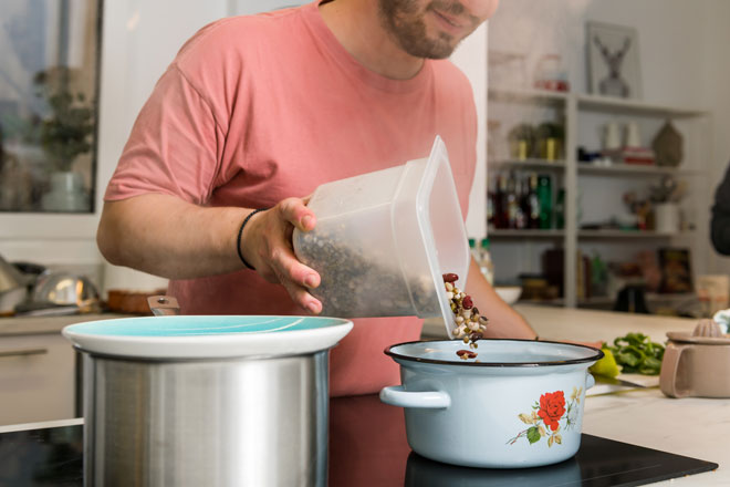 Προσοχή: βάζουμε τα ρεβύθια και τα φασόλια να μουλιάσουν από το προηγούμενο βράδυ