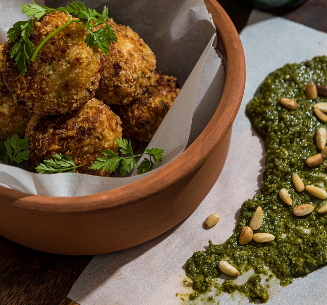 Κολοκυθοκεφτέδες με σπιτικό πέστο αρωματικών