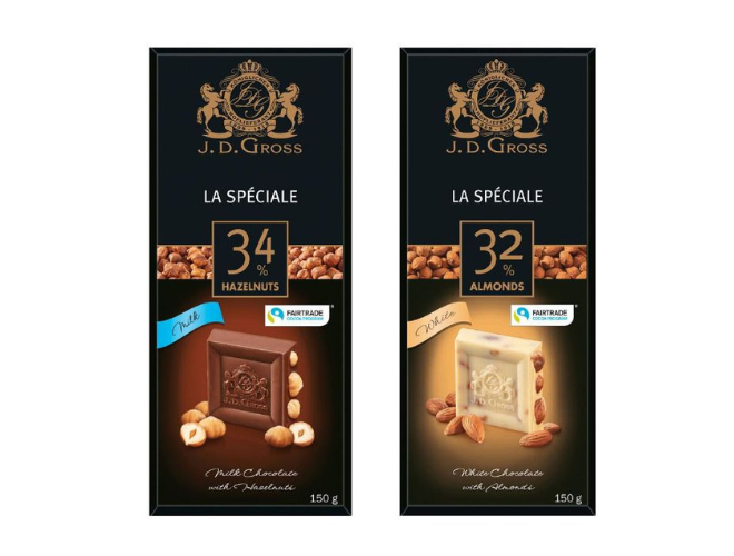 Η σημασία της σοκολάτας για την Lidl Ελλάς είναι έκδηλη από τα εκλεκτά προϊόντα υψηλής ποιότητας που προσφέρει στα ράφια της εδώ και χρόνια. Διαθέτει μεγάλη ποικιλία σε μπάρες σοκολάτας ιδιωτικής ετικέτας με υψηλά χαρακτηριστικά ποιότητας, όπως ολόκληρους ξηρούς καρπούς, μαύρη σοκολάτα με 74% κακάο, σοκολάτες γάλακτος, σοκολάτες με σταφίδες ή με μπισκότο. Ιδιαίτερα αγαπημένες είναι οι εκλεκτές σοκολάτες ιδιωτικής ετικέτας με την επωνυμία «J.D. Gross», βελγικές πραλίνες ή σοκολάτες με καραμέλα ή πορτοκάλι και σοκολάτες με ιδιαίτερες ποικιλίες όπως Ecuador ή Amazonas και διαφορετικά ποσοστά από ποιοτικό κακάο ως συστατικό, 56% ή 60% ή 70%.