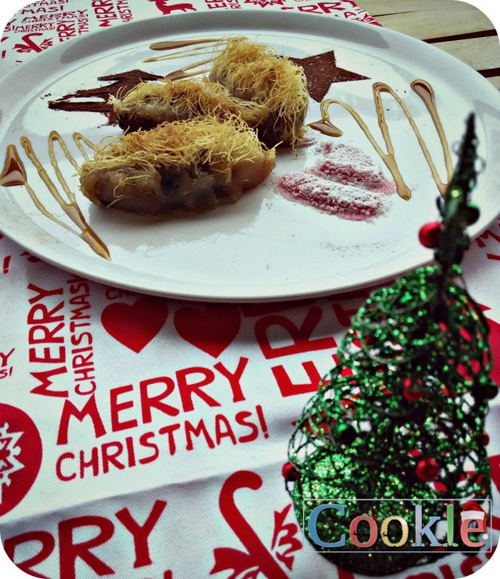 Αυτό το κανταϊφι ήρθε για να παντρέψει την αγάπη μας για τα σιροπιαστά γλυκά του ταψιού και την μανία για τη σοκολάτα. Κάθε μπουκιά σε διακτινίζει πότε στην μυστηριώδη ανατολή και πότε στα υψίπεδα της Ελβετίας! Σοκολάτα, καυτερό πιπέρι, αποξηραμένα κράνια (και όχι κράνπμερι) και όλο αυτό τυλιγμένο σε απολαυστικό φύλλο και ψημένο σε καλό αρωματικό βούτυρο. Α, ξέχασα… και τέλος το βάπτισμα της απόλαυσης σε ένα σιρόπι με άρωμα πορτοκαλιού και γαρίφαλου.