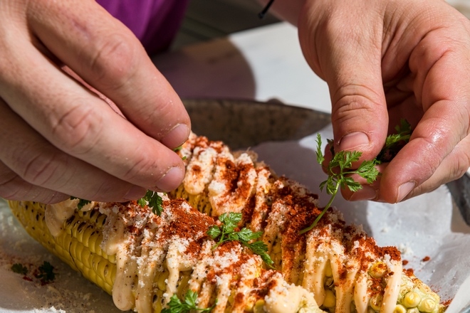 Με βάση το αγαπημένο μας ψητό καλαμπόκι και προσθέτοντας πικάντικη μαγιονέζα, παρμεζάνα και μυρώνια, ο σεφ Αλμπέρτο Σιμιλλίδης μπήκε στην κουζίνα και δημιούργησε μια μοντέρνα παραλλαγή της συνταγής που θα λατρέψετε.