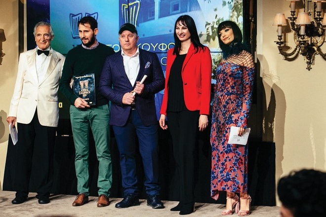 Η υπουργός Τουρισμού Έλενα Κουντουρά απένειμε το βραβείο για το κορυφαίο εστιατόριο της Ελλάδας, το «Etrusco» (17/20 και δύο Χρυσοί Σκούφοι), στον Έκτορα Μποτρίνι και τον Νίκο Μπίλλη, σεφ-ιδιοκτήτη και sous chef αντίστοιχα. Μαζί τους οι συμπαρουσιαστές της βραδιάς Γιώργος Κοτανίδης και Κατερίνα Μισιχρόνη.