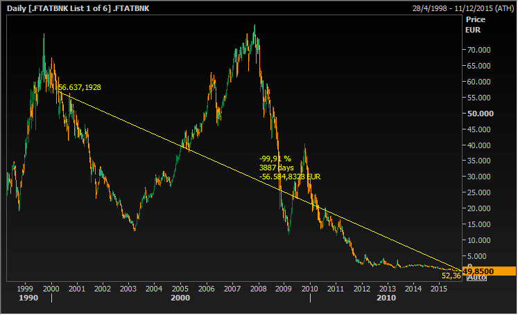 Δε θα πρέπει να προκαλεί έκπληξη, λοιπόν, ότι αθροιστική απόδοση των τραπεζών σε όλο το διάστημα της θητείας των παραπάνω πρωθυπουργών της χώρας, από το 2000 μέχρι σήμερα, είναι -99,91%.