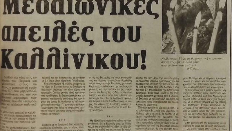 3.Ακολούθησαν οι νόμοι για τον εκσυγχρονισμό του Οικογενειακού Δικαίου, την κατάργηση της μοιχείας, τη θεσμοθέτηση του πολιτικού γάμου, τους οποίους η ΝΔ επίσης καταψήφισε, κάνοντας λόγο για «καταστροφή της οικογένειας» και άλλα παρόμοια κινδυνολογικά. Συμπορεύτηκε έτσι με ό,τι πιο σκοταδιστικό εξέφραζε(και τότε) η Εκκλησία και αποτυπώνεται εδώ σε δημοσίευμα της ΕΛΕΥΘΕΡΟΤΥΠΙΑΣ: