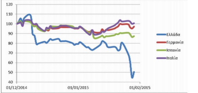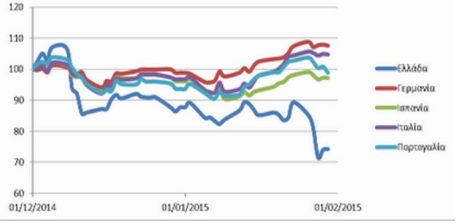 Οι εξελίξεις στην Ελλάδα έχουν μικρή επιρροή στις τράπεζες των υπολοίπων χωρών. Ο Ισπανικός τραπεζικός δείκτης είναι 12.6%χαμηλότερος από την 1η Δεκεμβρίου 2014, αλλά ο Γερμανικός και ο Ιταλικός βρίσκονται στα ίδια επίπεδα.