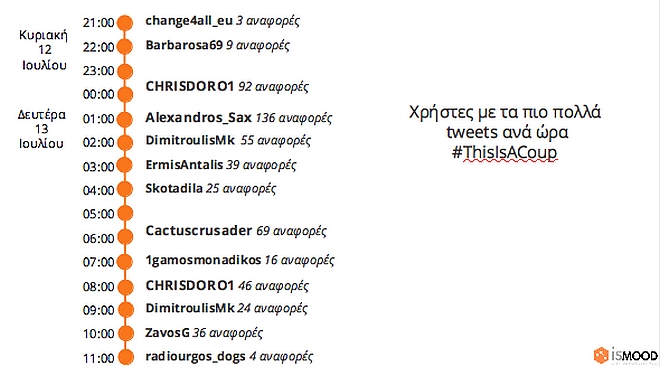 Ιδού και οι χρήστες με τα περισσότερα tweets (σχετικά με το #thisisacoup) ανά ώρα.