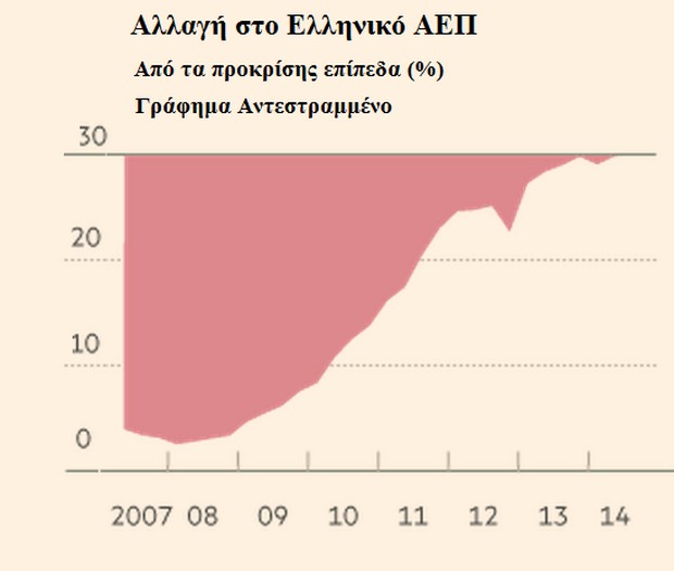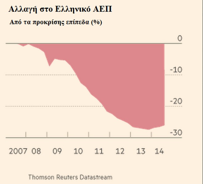 Στο εικονογράφημα που συνοδεύει το άρθρο αποτυπώνεται η εξέλιξη του ΑΕΠ από το 2007 μέχρι σήμερα. Σε αυτό που μπορεί να ονομαστεί «το πιο τρομακτικό γράφημα στον κόσμο», αποτυπώνεται το μέγεθος της καταστροφής που υπέστη η ελληνική οικονομία στα τελευταία χρόνια και ιδιαίτερα από το 2010 και μετά, καθώς το ΑΕΠ της συρρικνώθηκε κατά 26%, όταν η αρχική πρόβλεψη του ΔΝΤ τοποθετούσε την ύφεση κοντά στο 6%.