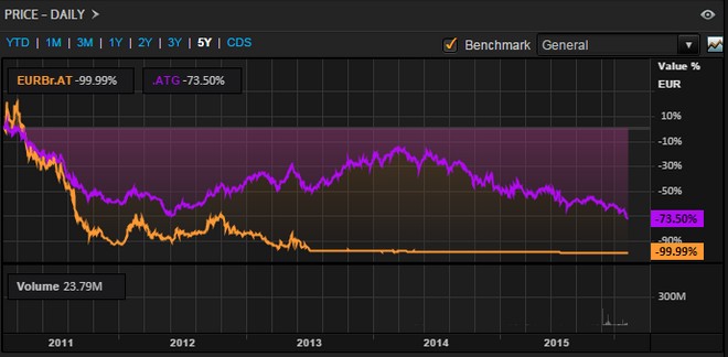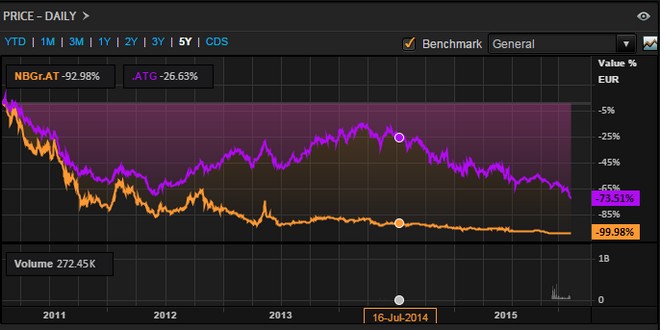 Το χρηματιστήριο στον Άδη. Απόδοση 5ετίας: ΠΕΙΡΑΙΩΣ: -100%, EUROBANK: -99,99%,ΕΤΕ: -99,98%