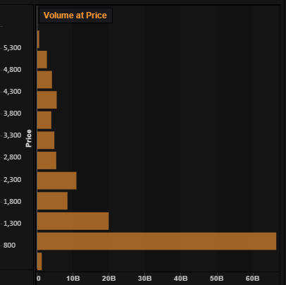 Εξετάζοντας χρηματιστηριακά δεδομένα για περισσότερες από δύο δεκαετίες διαπιστώνουμε πως ο όγκος συναλλαγών στα επίπεδα τιμών μεταξύ 800 και 1300 μονάδων είναι, μακράν, ο μεγαλύτερος στην ιστορία του Χρηματιστηρίου Αθηνών (διάγραμμα 3).