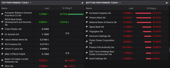 Το Χρηματιστήριο Αθηνών καίγεται, με τις μετοχές του τραπεζικού κλάδου να “εξαφανίζονται” λίγο πριν τεθούν σε εφαρμογή τα σχέδια για την πώληση των κόκκινων δανείων τους σε funds αλλά και πριν αρχίσει ο νέος γύρος μείωσης προσωπικού τους με προγράμματα εθελούσιας εξόδου σε μια προσπάθεια να καλυφθεί μεγάλο μέρος των απαιτήσεων για περιορισμό του προσωπικού που προκύπτει από τα σχέδια αναδιάρθρωσης.