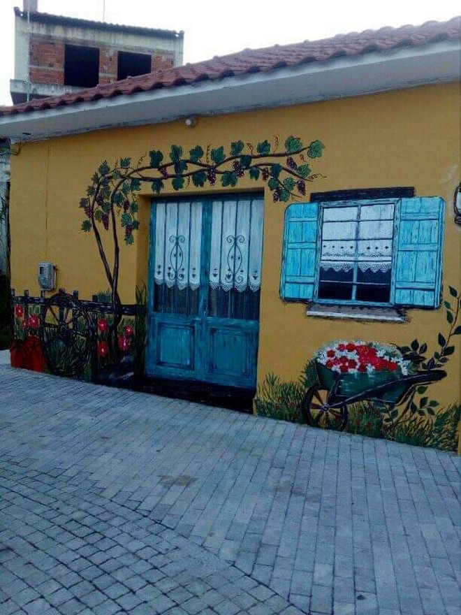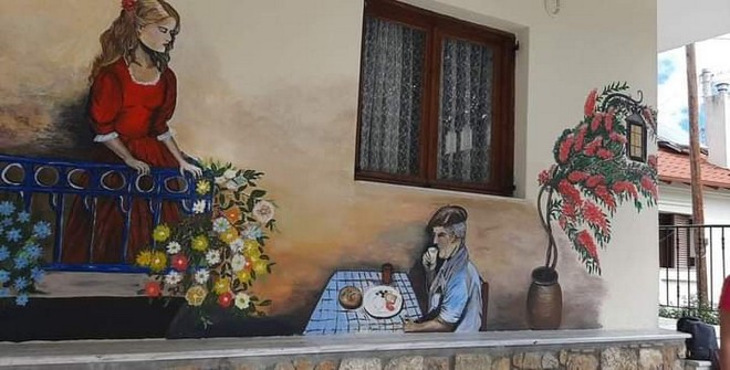 Αντίθεση στη μουντάδα του lockdown αποτελούν οι ζωγραφισμένοι τοίχοι παλιών κτιρίων της Παλαιόχωρας Χαλκιδικής χάρη στις εικαστικές παρεμβάσεις επτά γυναικών -μελών του Συλλόγου Τεχνών Γαλάτιστας.