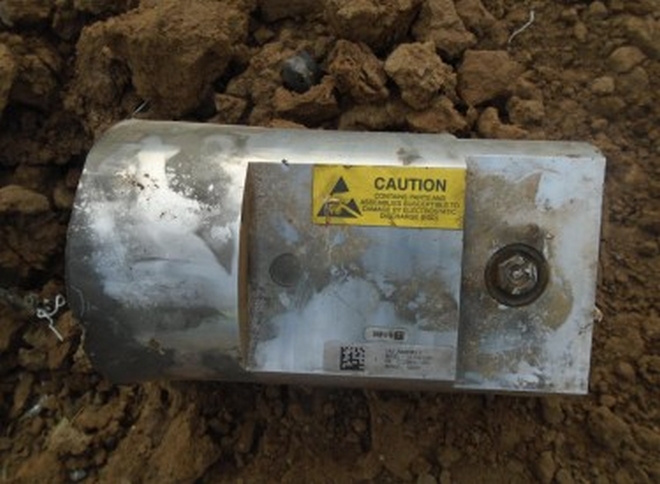 Μέρος ενός μικρού πυρομαχικού καθόδου στο σημείο αεροπορικής επίθεσης των ΗΠΑ σε τρεις αγρότες έξω από το χωριό Darusalaam στην Κάτω περιοχή Shabelle της Σομαλίας, 12 Νοεμβρίου 2017