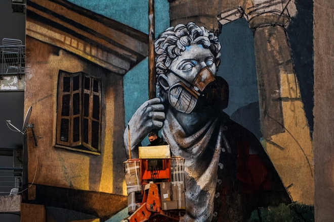Μια τοιχογραφία 15 μέτρων στη Δράμα “μιλά” για την εποχή του κορονοϊού