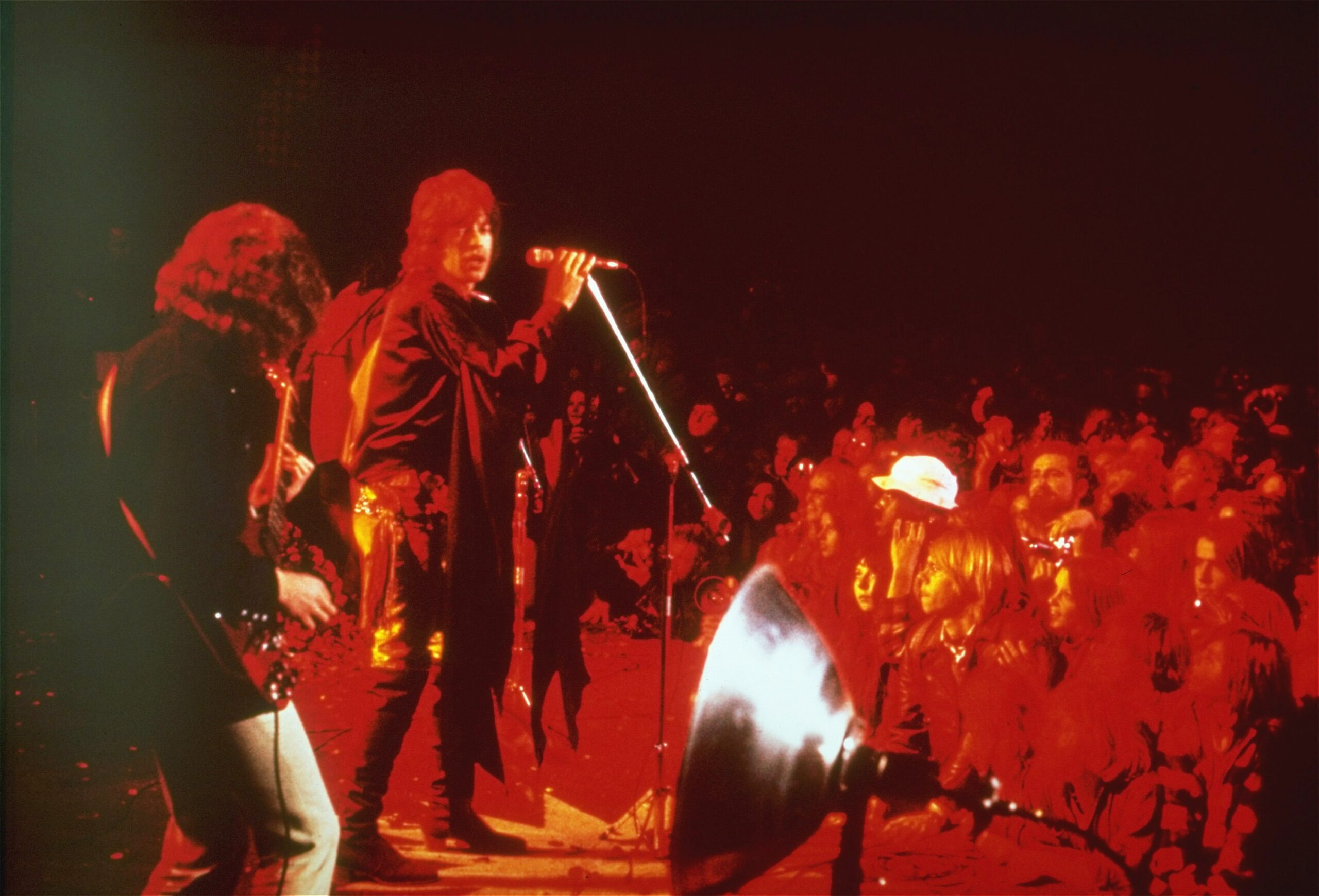 Όταν έφτασε η σειρά των Rolling Stones, λίγο πριν το ηλιοβασίλεμα, η κατάσταση είχε ξεφύγει εντελώς από κάθε έλεγχο, με περίπου 5.000 άτομα να συνωστίζονται μπροστά στη σκηνή και πολλούς εξ αυτών να θέλουν να σκαρφαλώσουν πάνω. Μάταια ο Τζάγκερ προσπαθούσε να τους ηρεμήσει από το μικρόφωνο. Ενώ οι Stones έπαιζαν το τρίτο τραγούδι τους (“Sympathy for the devil”), ένας ακόμη άγριος καυγάς ξέσπασε, αναγκάζοντας την μπάντα να διακόψει για λίγο, μέχρι να αποκατασταθεί κάπως η τάξη. Στη συνέχεια, στο ξεκίνημα του “Under my thumb”, ο 18χρονος Μέρεντιθ Χάντερ, μαζί με κάποιους ακόμα, προσπάθησε να ανέβει στη σκηνή.