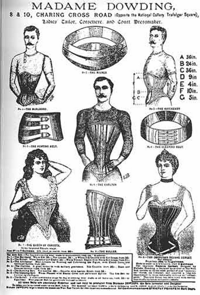 Γενικά, κράτα πως το corset χρησιμοποιείτο από τα τέλη του 16ου αιώνα έως και τον 1914 (είχαν ανανεωθεί τα μέρη που ‘μάζευε’ -με την μετατόπιση στο γοφό) όταν ‘τα σώματα των γυναικών θύμιζαν τηλεφωνικούς στύλους’.