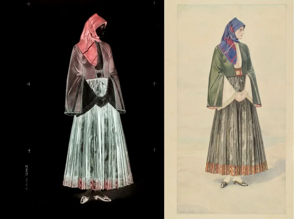Από την έκδοση Ελληνικαί Εθνικαί Ενδυμασίαι, στις πολλαπλές αφηγήσεις για την κοινωνία του Μεσοπολέμου