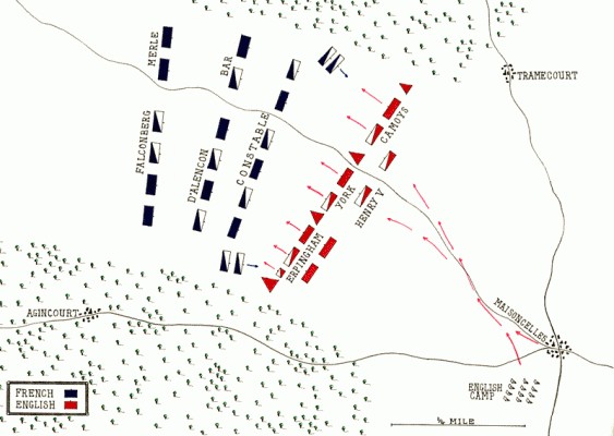 Στις 19 Απριλίου του 1415, ο βασιλιάς της Αγγλίας, Ερρίκος Ε’, κήρυξε πόλεμο εναντίον της Γαλλίας. Ο Άγγλος βασιλιάς επέλεξε να μη βασιστεί τόσο στους ευγενείς ιππότες, που συνήθως αποτελούσαν το μεγαλύτερο μέρος του στρατού, αλλά σε τοξότες. Η απόφαση του Ερρίκου, αν και ανορθόδοξη, αποδείχτηκε εξαιρετικά αποτελεσματική. Μέχρι τότε στους πολέμους συμμετείχαν κυρίως ευγενείς ιππότες, με βαριά πανοπλία και οπλισμό. Ήταν εκπαιδευμένοι πολεμιστές και ακολουθούσαν τον κώδικα της ιπποσύνης, που απαιτούσε γενναιότητα στη μάχη, αλλά και ηθική ανωτερότητα.