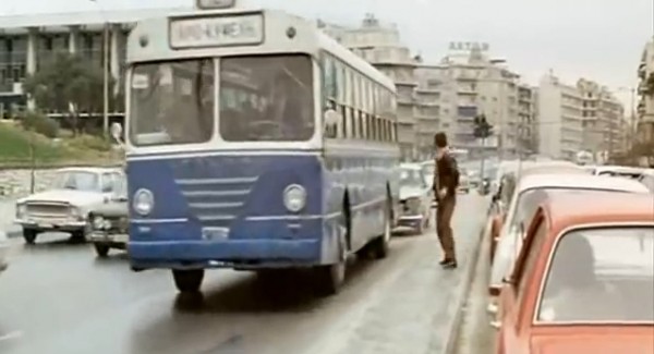 Τα επόμενα καρέ του φιλμ αποτυπώνουν άλλα σημεία της Αθήνας, με τα μπλε λεωφορεία, τα τρίκυκλα και τις βέσπες στους δρόμους.