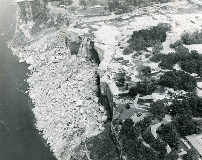 Το καλοκαίρι του 1969 μια ομάδα μηχανικών του αμερικανικού στρατού διέκοψε τη ροή στους καταρράκτες του Νιαγάρα προκειμένου να πραγματοποιήσει γεωλογικές έρευνες μετά από κατολισθήσεις που είχαν σημειωθεί . Για σχεδόν έξι μήνες οι καταρράκτες που βρίσκονται στην αμερικανική πλευρά, έμειναν χωρίς νερό μετά από 12 .000 χρόνια συνεχούς ροής. Για το έργο οι Αμερικανοί έφτιαξαν ένα τεράστιο φράγμα 182 μέτρων στον ποταμό εκτρέποντας τη ροή προς τη μεριά του Καναδά. Οι μηχανικοί μελέτησαν την κοίτη του ποταμού ώστε να εντοπίσουν τυχόν προβλήματα που θα μπορούσαν να προκαλέσουν διάβρωση του εδάφους.