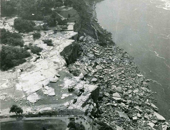 Τον Νοέμβριο του 1969 μπροστά σε 2.650 θεατές συνεργεία ανατίναξαν το φράγμα και η ροή αποκαταστάθηκε. Οι καταρράκτες του Νιαγάρα είναι σύμπλεγμα του ποταμού Νιαγάρα, στα διεθνή σύνορα μεταξύ του Οντάριο στον Καναδά και της πολιτείας της Νέας Υόρκης. Αποτελούνται από δύο μεγάλα τμήματα που χωρίζονται από το νησί Goat : οι καταρράκτες Horseshoe, η πλειονότητα των οποίων βρίσκεται στην Καναδική πλευρά των συνόρων και των Americans Falls στην Αμερικανική πλευρά. Οι μικρότεροι Bridal Veil Falls βρίσκονται στην αμερικανική πλευρά, αλλά διαχωρίζονται από τους άλλους με το νησί Luna. Ακόμα και μετά τι εργασίες των μηχανικών το νησί Luna έμεινε κλειστό για το κοινό καθώς υπήρχε ο φόβος της αστάθειας.