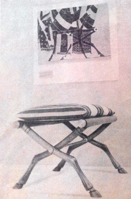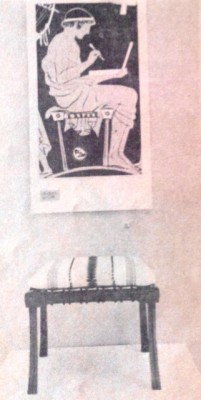 Δίφρος. Το σχέδιο του καθίσματος αυτού, που διπλώνει, είναι από πήλινη πλάκα του 6ου π.Χ αιώνα και βρίσκεται στο κρατικό Μουσείο Βερολίνου