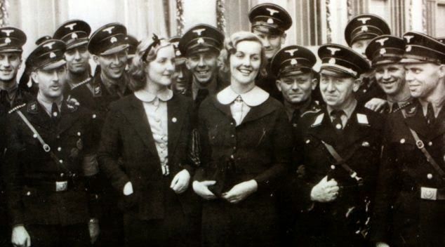 Αριστερά, η Γιούνιτι και δεξιά, η αδελφή της Νταϊάνα στη Γερμανία με αξιωματικούς των Ναζί