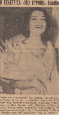 Στα καλλιστεία του 1959 οι 13 υποψήφιες ήταν ομορφότερες από ποτέ. Η Υακίνθη Καραβίτη, η Πάρη Λεβέντη, η Αμαρυλλίς, ψευδώνυμο της Ζωίτσας Λάσκαρη και η Μαίρη Φορμόζη, η οποία αντικαθιστούσε τη Βουγιουκλάκη σε σκηνές από τις ταινίες της. Αυτές ήταν και τα φαβορί για τον τίτλο της ομορφότερης Ελληνίδας.
