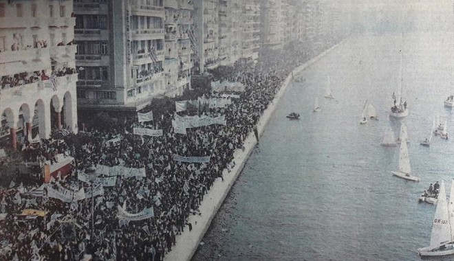 14 Φεβρουαρίου 1992. Το κέντρο της Θεσσαλονίκης βουλιάζει από κόσμο. Ένα εκατομμύριο πολίτες, άνθρωποι όλων των ηλικιών, απ’ όλη την Ελλάδα, ενώθηκαν  για να συμμετάσχουν στο συλλαλητήριο για το ζήτημα της αναγνώρισης και μετονομασίας των Σκοπίων.