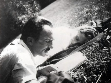 Ανεβαίνουμε στο πάνω δωμάτιο, στο γραφείο του συγγραφέα. Οι τοίχοι είναι σκεπασμένοι με βιβλία σε ράφια, κάπου ξεχωρίζει ένα πορτραίτο του Ντάντε. Απ’ τον εξώστη βλέπεις τη γαλάζια γοητεία της θάλασσας. Η Γαλλία του Νότου, θερμή γυναίκα, σε ναρκώνει με τη γοητεία της. Μια κληματαριά πρασινίζει στα κάγκελα, κατάφορτη τσαμπιά μ’ άγουρες ρόγες…