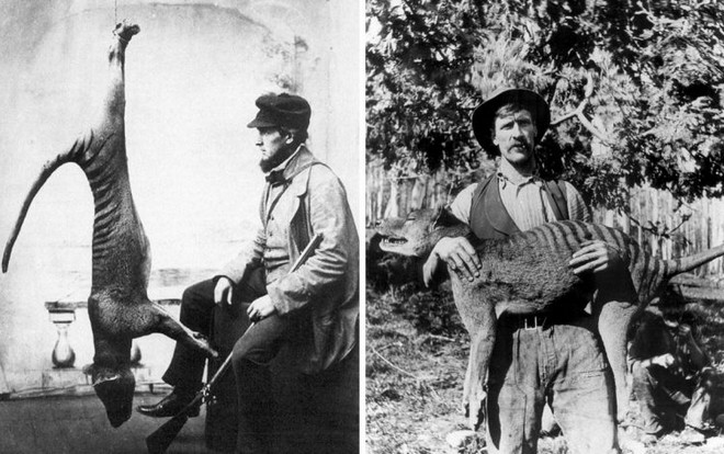 Στην κεντρική φωτογραφία εικονίζονται δύο θυλακίνοι, γνωστοί ως τίγρεις της Τασμανίας, οι οποίοι εξαφανίστηκαν τον περασμένο αιώνα. Ο τελευταίος ονομαζόταν Μπέντζαμιν και πέθανε το 1936 σε έναν ζωολογικό κήπο του Χόμπαρτ.