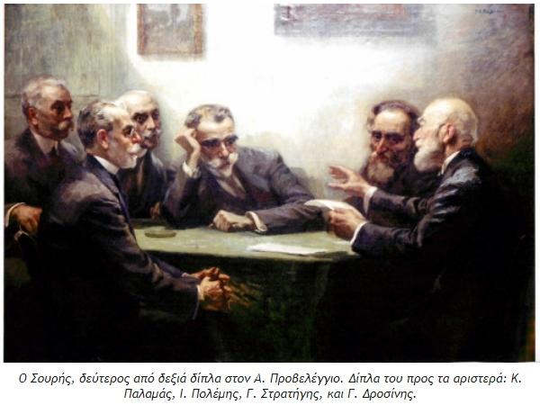Εκείνος βέβαια, όπως μαρτυρούν σύγχρονοί του, ήταν πάντα βυθισμένος στις σκέψεις του, κλειστός χαρακτήρας και μάλλον μελαγχολικός. Ίσως άλλωστε δεν είναι τυχαίο το ύφος που έχει στον περίφημο πίνακα, «Οι σύγχρονοι ποιηταί», του Γ. Ροϊλού, στον οποίο απεικονίζεται δεύτερος από δεξιά, δίπλα από τον Αριστομένη Προβελέγγιο που απαγγέλει ένα έργο του.