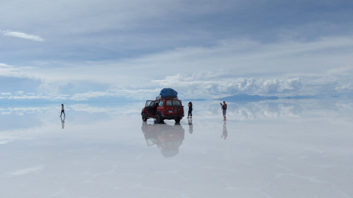 Οι αλυκές στο Salar de Uyuni στη Βολιβία έχουν ονομαστεί – και όχι άδικα –«επίγειος παράδεισος». Τις ηλιόλουστες μέρες ο επισκέπτης θα αντικρίσει ένα απέραντο λευκό από παχιά κρούστα από αλάτι. Αλλά με την πρώτη βροχόπτωση το μέρος μετατρέπεται στον μεγαλύτερο καθρέφτη του κόσμου που φαίνεται να μην τελειώνει πουθενά, καθώς το μάτι χάνεται στην απέραντη έκταση. Η αλυκή Salar de Uyuni είναι η μεγαλύτερη από τις δύο αλυκές, που παρέμειναν, όταν στέρεψε η γιγαντιαία προϊστορική λίμνη Minchin. Πρόκειται για την μεγαλύτερη αλατο-λίμνη στον κόσμο καθώς αγγίζει τα 10.582 τετραγωνικά χιλιόμετρα σε μέγεθος. Βρίσκεται πολύ κοντά στην κορυφή των Άνδεων σε υψόμετρο 3.650 χιλιόμετρων, γεγονός που την κάνει να μοιάζει ως την συνέχεια του ουρανού, προκαλώντας ένα πολύ εντυπωσιακό θέαμα.