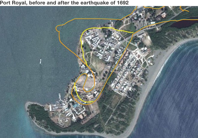 Οι ένδοξες μέρες της πόλης Πορτ Ρουαγιάλ τελείωσαν αιφνιδίως το 1692, όταν τη χτύπησαν ένας σεισμός και στη συνέχεια ένα τσουνάμι. Το μεγαλύτερο τμήμα της πόλης βυθίστηκε και ο κόσμος απέδωσε την μεγάλη καταστροφή στη «Θεία Δίκη» που τιμώρησε τους αμαρτωλούς κατοίκους. Η Σύνοδος της Εκκλησίας της Τζαμάικα δήλωσε ότι το Πορτ Ρουαγιάλ ήταν ένα χαρακτηριστικό παράδειγμα τιμωρίας από τον Θεό.