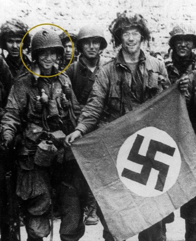 Το πρωτοσέλιδο των New York Times της 8ης Ιουνίου 1944, έκανε τον γύρο του κόσμου και απεικονίζει μια ομάδα μαχητών να κρατούν την ναζιστική σημαία με τον αγκυλωτό σταυρό ως λάφυρο. Ο νεαρός που γελά αριστερά είναι ο Έλληνας στρατιώτης του αμερικανικού στρατού και έγινε μαζί με τους συμπολεμιστές του λαϊκός ήρωας.