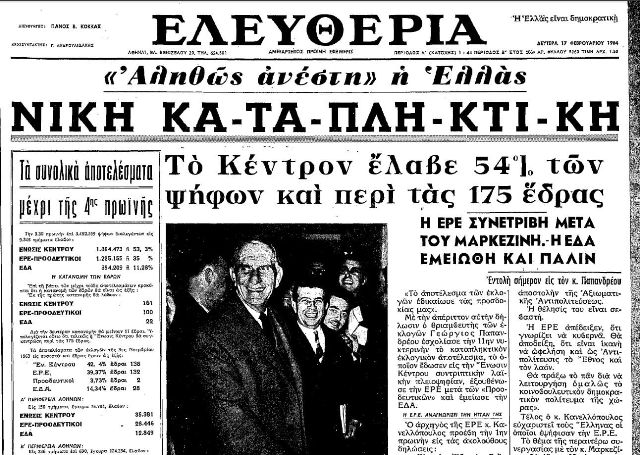 Όμως, το τεράστιο ποσοστό που έλαβε η Ένωση Κέντρου τον Φεβρουάριο του 1964 αντί να θωρακίσει τη Δημοκρατία, τελικά, μέσα από απίστευτες συγκρούσεις και ανατροπές, οδήγησε στο βασιλικό πραξικόπημα και την Αποστασία των βουλευτών της Ένωσης Κέντρου τον Ιούλιο του 1965. Και στη συνέχεια, τον Απρίλιο του 1967, στην επτάχρονη δικτατορία των Συνταγματαρχών.