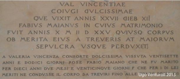 Οι ιστορίες αγάπης είναι διαχρονικές και δείχνουν την ομορφιά της ανθρώπινης φύσης. Πρόκειται για την ιστορία του Φάβιου (Fabius Maianus) που έζησε σε μια πρώην ρωμαϊκή πόλη την Trier, κοντά στη σημερινή Φρανκφούρτη της Γερμανίας ανάμεσα στον 2ο και 3ο αιώνα π.Χ. Η ιστορία του είναι χαραγμένη στην πέτρινη σαρκοφάγο της γυναίκας του, Βαλέριας, που βρέθηκε στην πόλη Παβία, κοντά στο σημερινό Μιλάνο της Ιταλίας.