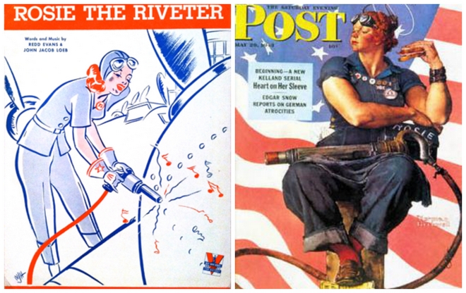 Δεξιά το εξώφυλλο του τραγουδιού Rosie the riveter. Αριστερά το εξώφυλλο της Νόρμαν Ροκγουελ