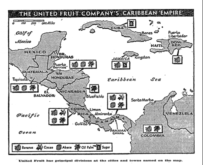 Η Κολομβία, η Γουατεμάλα, ο Παναμάς, η Κούβα, η Νικαράγουα και άλλες χώρες υπέφεραν από την πολιτική της εταιρείας, την αγριότητα των δικτατοριών και τα εξαιρετικά χαμηλά ημερομίσθια. Μία εταιρεία ήλεγχε οικονομικά και πολιτικά ολόκληρη την Κεντρική Αμερική. Χαρακτηριστική είναι μια φράση που λέχθηκε: «Στην Ονδούρα είναι φθηνότερο να εξαγοράσεις βουλευτή από ένα μουλάρι».
