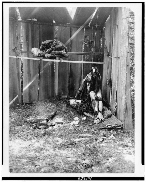 Ο άντρας στη φωτογραφία ψήνει μια μούμια πάνω στη φωτιά, την οποία θα δώσει στους χορευτές για να τη φάνε… Όλοι οι χορευτές έπρεπε να κάτσουν γυμνοί γύρω από τη μούμια και να περιμένουν καθώς ένας άντρας έκοβε τη μούμια σε κομμάτια. Το κεφάλι πήγαινε στον ισχυρότερο χορευτή και το σώμα μοιραζόταν στους υπόλοιπους. Όταν τελείωναν, πετούσαν τα κόκαλα σε μια βαθιά λίμνη για να μη μολύνουν τους χορευτές που είχαν φάει τη σάρκα.