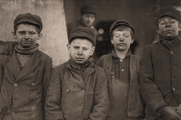Οι περισσότερες από τις φωτογραφίες ελήφθησαν από τον φωτορεπόρτερ Lewis Hine μεταξύ 1908 και 1913, στα ανθρακωρυχεία της Πενσυλβάνιας και της Δυτικής Βιρτζίνια. Αποτελούν ένα αδιάψευστο ντοκουμέντο για την εκμετάλλευση των παιδιών. Οι νόμοι για την προστασία τους τα επόμενα χρόνια έγιναν αυστηρότεροι και η παιδική εργασία απαγορεύτηκε, χωρίς όμως να έχει εξαλειφθεί μέχρι σήμερα.