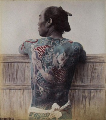 Αρχικά, τα τατουάζ στην Ιαπωνία χρησιμοποιούνταν ως τιμωρία για εγκληματίες. Σταδιακά, η τέχνη του τατουάζ αναπτύχθηκε σε τέτοιο βαθμό, που χρησιμοποιούνταν ως διακοσμητικό του σώματος σαν ένα περίτεχνο κιμονό ή κόσμημα. Από τον 18ο αιώνα μέχρι και το τέλος του δευτέρου παγκοσμίου πολέμου, τα τατουάζ απαγορεύονταν δια του νόμου στην Ιαπωνία, επειδή πίστευαν ότι έδιναν μία βάρβαρη, απολίτιστη εικόνα της χώρας προς τα έξω. Η απαγόρευση είχε ως αποτέλεσμα να συνδεθούν αποκλειστικά με το εγκληματικό στοιχείο και συγκεκριμένα, την ιαπωνική μαφία, την περίφημη “Γιακούζα”.