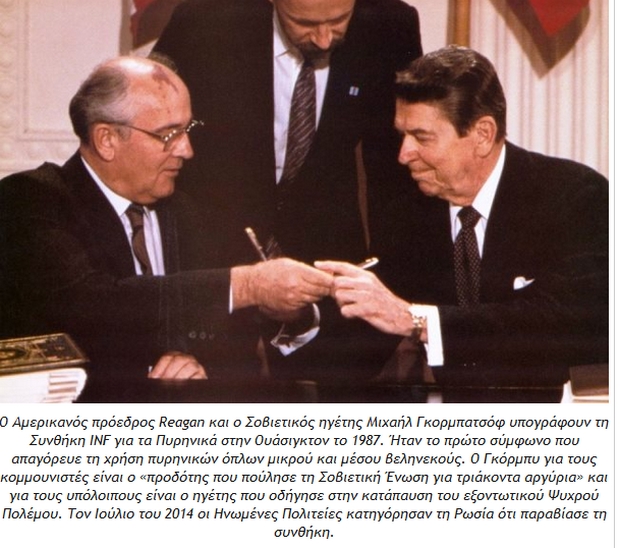 Στις ημέρες μας ο Βλαντιμίρ Πούτιν απειλεί τους Αμερικανούς να εγκαταλείψει τη διμερή συνθήκη-ορόσημο της ψυχροπολεμικής περιόδου για τον έλεγχο των πυρηνικών όπλων μετά τη δημόσια πλέον κατηγορία του Μπαράκ Ομπάμα κατά της Μόσχας για παραβίαση της Συνθήκης INF (Intermediate Range Nuclear Forces Treaty) με τη δοκιμή πυρηνικού πυραύλου τύπου Κρουζ.