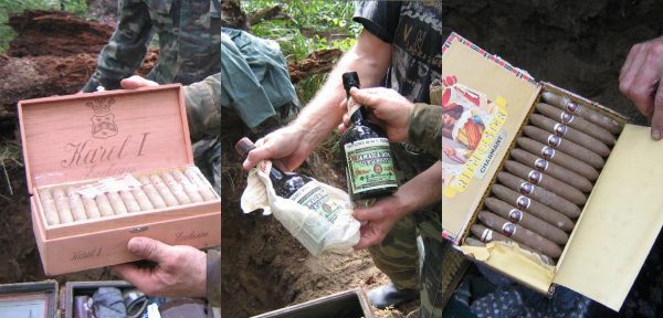 Πούρα, ποτά, χρήματα και προσωπικά αντικείμενα ενός αξιωματικού του Γ΄Ράιχ βρήκαν πρόσφατα Ρώσοι που έψαχναν για νάρκες σε σημεία όπου είχαν διεξαχθεί οι φονικές μάχες του Β΄Παγκοσμίου Πολέμου. Όταν έφθασαν στην αγροτική περιοχή Νέφσκι Πιατατσόκ, όπου έγιναν αιματηρές επιχειρήσεις κατά τη διάρκεια της πολιορκίας του Λένινγκραντ, το ειδικό μηχάνημα τους ειδοποίησε ότι κάτι είχαν βρει. Οι Ρώσοι έσκαψαν μέσα στις λάσπες και βρήκαν ένα κλειδωμένο μεταλλικό κουτί, θαμμένο λίγα μέτρα κάτω από το έδαφος.