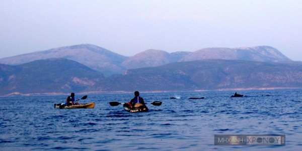 Κοπάδια με δελφίνια προσεγγίζουν το νησί του Καλάμου για να βρουν τροφή. Τα θαλάσσια καγιάκ των Cannibals κάθε χρόνο τον μήνα Ιούλιο εκδράμουν στην περιοχή και ζουν από κοντά την μοναδική αυτή εμπειρία