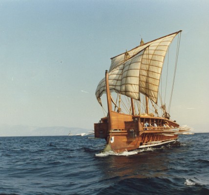 Αυτά τα πολεμικά πλοία είναι κυρίως γνωστά για το ρόλο τους στη Ναυμαχία της Σαλαμίνας, στην οποία οι Έλληνες με τη νίκη τους σταμάτησαν την εισβολή των Περσών το 480 π. Χ. Οι αρχαιολόγοι έχουν σχέδια, περιγραφές σε κείμενα αλλά δεν έχουν βρει ούτε μια τριήρη. Ήταν σχεδιασμένο για να είναι ελαφρύ και γρήγορο, είχε περίπου μήκος 37μ. και πλάτος 6μ. Μετέφερε συνολικά 170 κωπηλάτες, διατεταγμένους σε τρεις σειρές. Από εκεί πήρε και το όνομα της. Οι τριήρεις ήταν οπλισμένες με χάλκινα έμβολα και με αυτά χτυπούσαν τα εχθρικά πλοία. Ποτέ όμως δεν βρέθηκε ναυάγιο τριήρους. Εκτιμούν ότι επειδή ήταν πολύ ελαφριά, σπάνια βυθιζόταν οριστικά. Ακόμα και σπασμένη μπορούσε να επιπλέει. Συχνά το λαβωμένο σκαρί της ανασυρόταν από τη θάλασσα και επισκευαζόταν. Μοναδικό εύρημα είναι ο μπρούντζινος κριός που βρέθηκε το 1980 νότια της ισραηλινής Χάιφας. Έλληνες επιστήμονες  στην προσπάθεια να αποκρυπτογραφήσουν τα μυστικά της τριήρους κατασκεύασαν ένα αντίγραφο. Η  ‘ΟΛΥΜΠΙΑΣ’ ναυπηγήθηκε ααπό το πολεμικό ναυτικό την περίοδο 1985-1987 και πλέον, όλοι μπορούμε να την επισκεφτούμε στο Πάρκο Ναυτικής Παράδοσης στο Φλοίσβο.