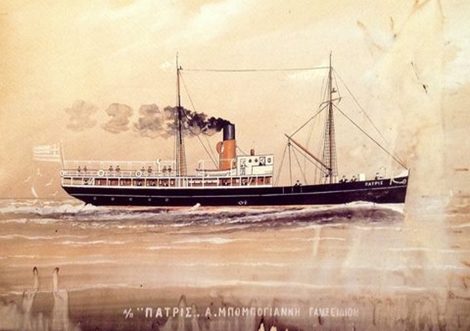 Το επιβατηγό ατμόπλοιο «Πατρίς» είχε ναυπηγηθεί το 1902 στην Γαλλία σαν σιδερένιο αλιευτικό πλοίο με το όνομα Saint Remi και μερικά χρόνια αργότερα είχε αγοραστεί από τους αδερφούς Χατζηκωνσταντή και μετονομάστηκε σε «Πατρίς».