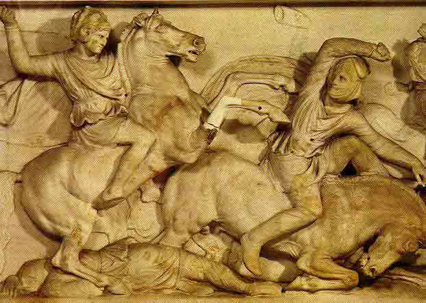 Ο Μέγας Αλέξανδρος καταβάλλει Πέρση ιππέα. Ο Μακεδόνας βασιλιάς μαχόταν πάντα στη πρώτη γραμμή εκθέτοντας τον εαυτό του σε θανάσιμους κινδύνους