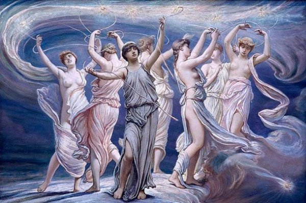 Σύμφωνα με την ελληνική μυθολογία οι Πλειάδες ήταν επτά αδελφές, κόρες του τιτάνα Άτλαντα και της Πλειόνης, αδελφές της Καλυψώς και των Υάδων