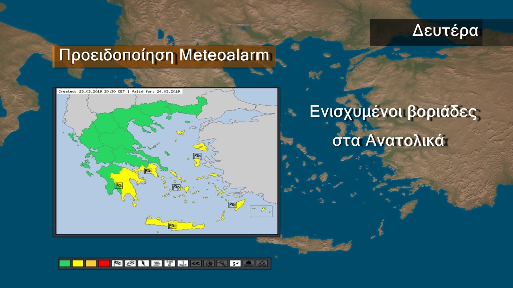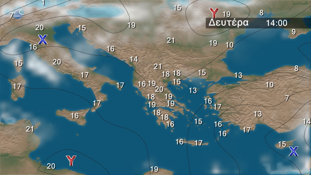 Στον χάρτη της Βαλκανικής που ακολουθεί παρατηρούμε ότι  στα Βόρεια Βαλκάνια υπάρχει ένα βαρομετρικό υψηλό το οποίο συνδυάζεται με το βαρομετρικό χαμηλό στην Ανατολική Μεσόγειο και προκαλεί τους ισχυρούς βοριάδες στη περιοχή μας. Κατά τα άλλα θα υπάρχουν τοπικές νεφώσεις στα δυτικά κεντρικά και βόρεια και η θερμοκρασία: θα έχει μέγιστη τιμή τους 20 με 23 βαθμούς Κελσίου .