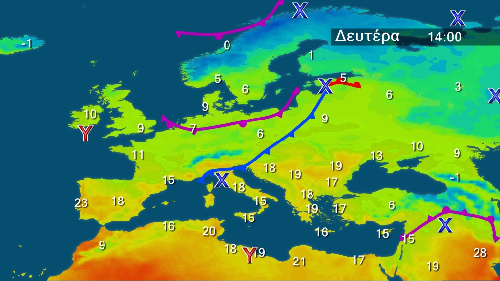 Η θερμοκρασία θα κυμαίνεται σε υψηλά επίπεδα για την εποχή τη Δευτέρα, 25 Μαρτίου.